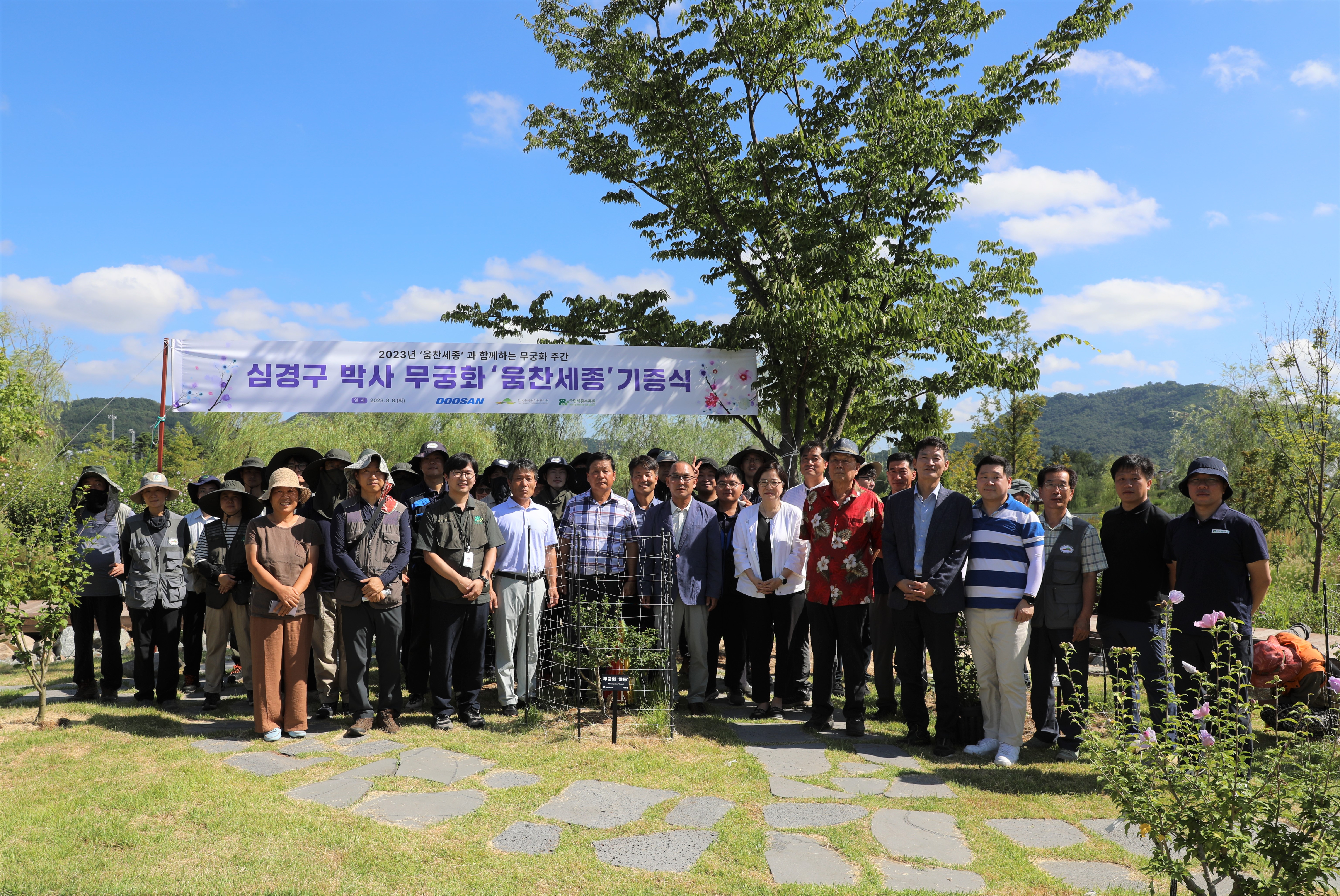 한국수목원정원관리원은 8월 8일 무궁화의 날을 기념해 ㈜두산과 함께 국립세종수목원 무궁화원에서 무궁화 신품종 ‘움찬세종’ 기증식을 진행했다.