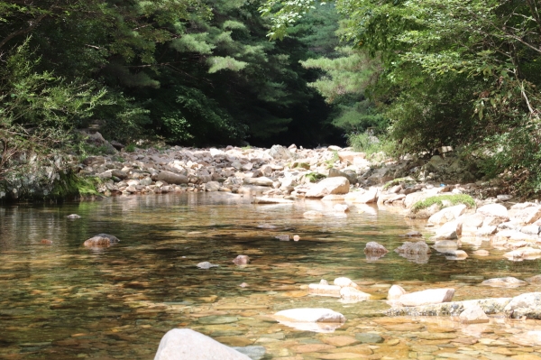 상류에 있는 만수계곡은 하천 폭이 좁은 편이고 물살이 빠른 편이다.