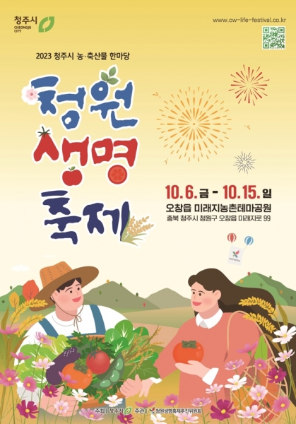 2023 청원생명축제는 10월 6일부터 10월 15일까지 10일간 ‘청주에 재미를, 청원생명에 건강을 담다’란 주제로 오창읍 미래지농촌테마공원에서 개최된다.
