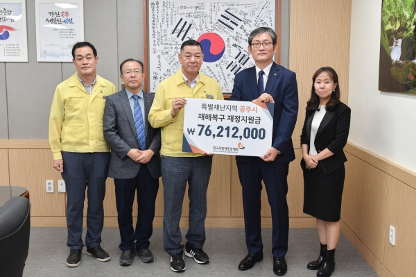[세종타임즈] 공주시는 지난 10일 한국지방재정공제회로부터 특별재난지역 재해복구 재정지원금으로 7600만원을 전달받았다고 밝혔다.