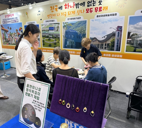 특히 음성군품바재생예술체험촌의 금속공예 비즈 목걸이, 업싸이클링 팔찌 만들기 등 매일 다른 체험프로그램과 ‘흥미진진한 팩토리투어’ 산업관광 퀴즈 이벤트를 함께 진행해 관람객의 관심을 얻었다.