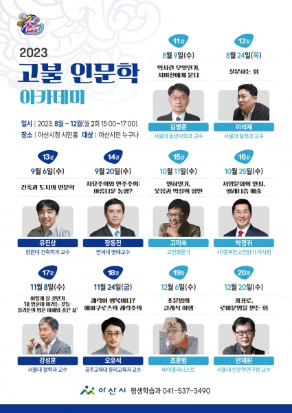 [세종타임즈] 아산시가 오는 24일 시청 시민홀에서 서울대 철학과 이석재 교수의 ‘질문하는 힘’을 주제로 고불 인문학 아카데미 열두 번째 이야기를 이어간다.