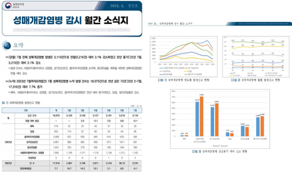 주요 내용은 7종 성매개감염병에 대한 감염병별 월간 및 누적 신고현황, 연도별 발생 추이, 전년 대비 증감, 성별·연령별 현황 등이다.