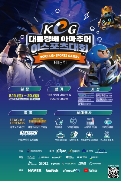 [세종타임즈] 문화체육관광부는 8월 19일부터 20일까지 군산 새만금컨벤션센터에서 ‘제15회 대통령배 아마추어 이스포츠대회’ 결선을 열고 16개 시도를 대표하는 아마추어 이스포츠 최강자를 가린다.