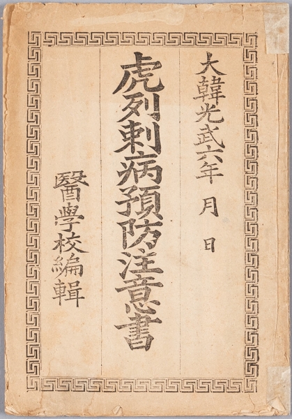 호열자병예방주의서는 대한제국이 1899년에 설립한 관립의학교 관립의학교: 1899년 대한제국 정부가 설립한 우리나라 최초의 근대식 의과대학으로 교육 기간은 3년이며 총 16과목을 정해 가르쳤다.