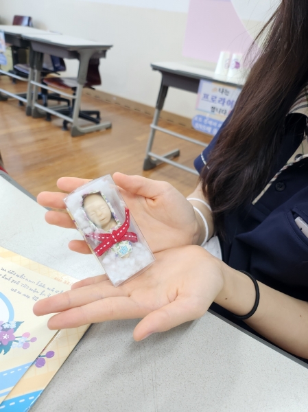 이번 교육은 성교육뿐만 아니라 생명에 대한 소중함과 책임감을 느낄 수 있도록 다양한 체험부스가 운영됐으며 ‘태아기 영상 시청’, ‘12주 태아 옷입히기’, ‘미래의 태아에게 엽서쓰기’, ‘임산부벨트 체험’, ‘사랑하는 사람에게 문자쓰기’, ‘포토존 촬영’등으로 구성됐다.