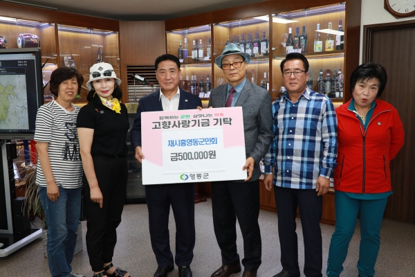 재시흥영동군민회는 지난 25일에 영동군을 방문해 직접 50만원의 기부금을 전달했다.