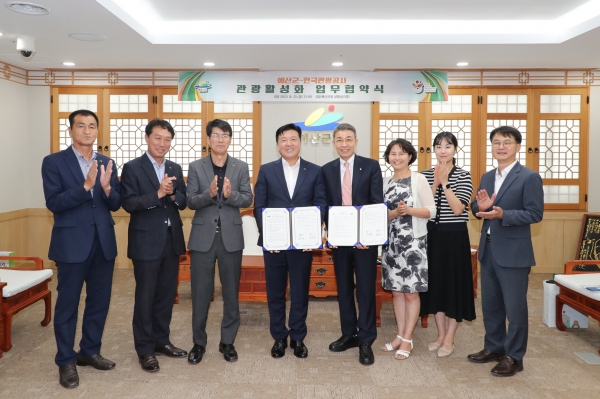 [세종타임즈] 한국관광공사와 예산군은 8월 25일 예산군청에서 지역관광 콘텐츠 개발 및 홍보를 위한 업무협약을 체결했다.