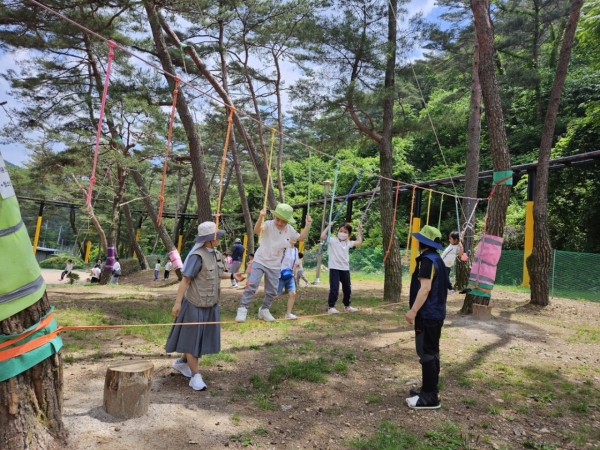 [세종타임즈] 보은군은 숲해설가와 함께하는 숲속 밧줄놀이 체험이 인기를 끌고 있다고 28일 밝혔다.