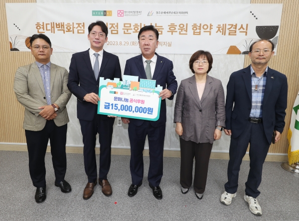 청주시문화산업진흥재단은 29일 10시 청주시청 임시청사 2층 직지실에서 현대백화점 충청점과 ‘청주문화나눔 후원식’을 진행했다고 밝혔다.
