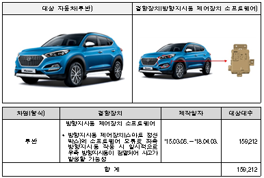 투싼 159,212대는 방향지시등 작동 불량으로 8월 31일부터, 팰리세이드 등 4개 차종 20,455대는 전동식 오일펌프 제어장치의 제조 불량으로 9월 8일부터 시정조치에 들어가고 아반떼 HEV 19,755대는 하이브리드 통합 제어장치 소프트웨어의 오류로 9월 11일부터, 유니버스 271대는 보조 제동장치 소프트웨어의 오류로 9월 7일부터 시정조치에 들어간다.