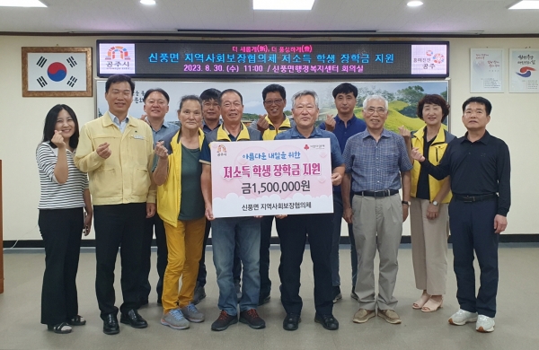[세종타임즈] 공주시 신풍면 지역사회보장협의체는 관내 저소득 가정 학생의 내일을 응원하기 위해 지난 30일 초중고교생 5명에게 총 150만원의 장학금을 전달했다고 밝혔다.