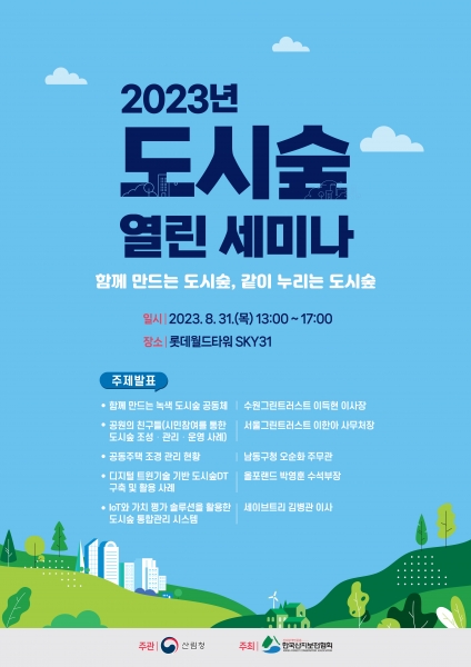 [세종타임즈] 산림청은 8월 31일 롯데월드타워에서 한국산지보전협회와 공동으로 ‘2023년 도시숲 열린 세미나’를 개최했다.