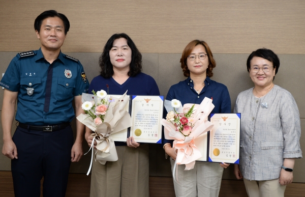 [세종타임즈] 홍성군 CCTV 관제원 윤혜영, 장희영 씨가 관내 범죄 예방과 치안 유지 공적을 세워 지난 7일 홍성경찰서장으로부터 감사장을 수여받았다.
