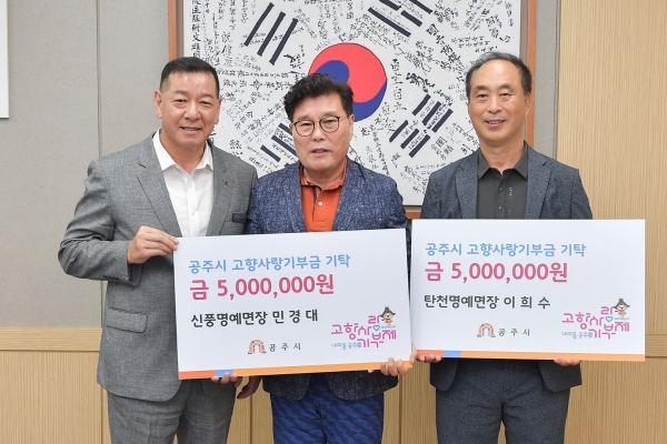 [세종타임즈] 공주시는 지난 11일 이희수 명예탄천면장, 정근철 명예사곡면장, 민경대 명예신풍면장이 고향사랑기부금을 기탁했다고 밝혔다.