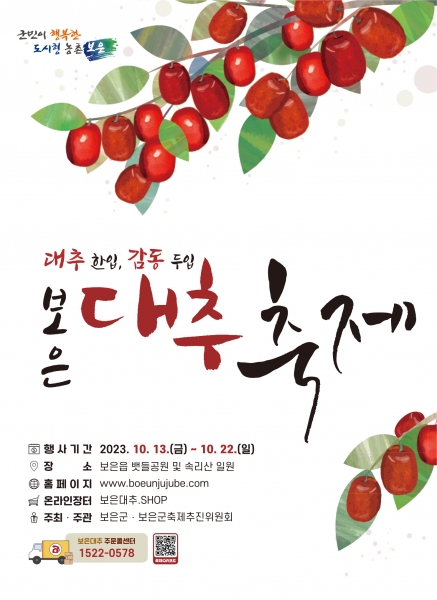 코로나19 등으로 인해 그동안 열리지 못한 축제가 4년 만에 현장에서 열리는 이번 보은대추축제는‘대추 한입, 감동 두입’이라는 주재로 양적, 질적으로 관광객들을 만족시키기 위해 농·특산물 판매뿐 아니라 먹거리, 놀거리, 볼거리를 제공하기 위해 공연, 전시, 체험 행사 등을 다채롭게 준비하고 있다.