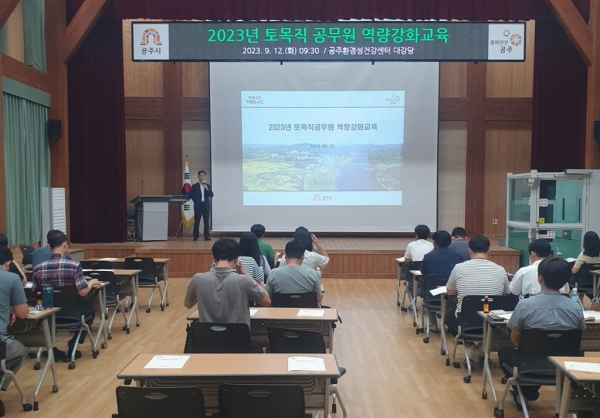 [세종타임즈] 공주시는 지난 12일 공주시 환경성건강센터에서 본청과 읍면 토목직 공무원 40여명을 대상으로 직무연찬 교육을 실시했다.