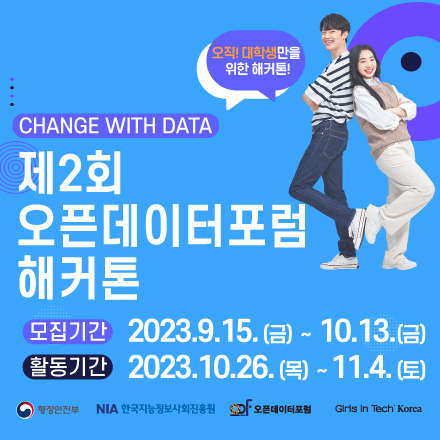‘오픈데이터포럼 해커톤’은 2022년부터 행정안전부가 주최하고 오픈데이터포럼이 주관해 개최해온 행사로 올해는 글로벌 비영리단체인 ‘걸스인텍-한국’과 협업으로 추진된다.