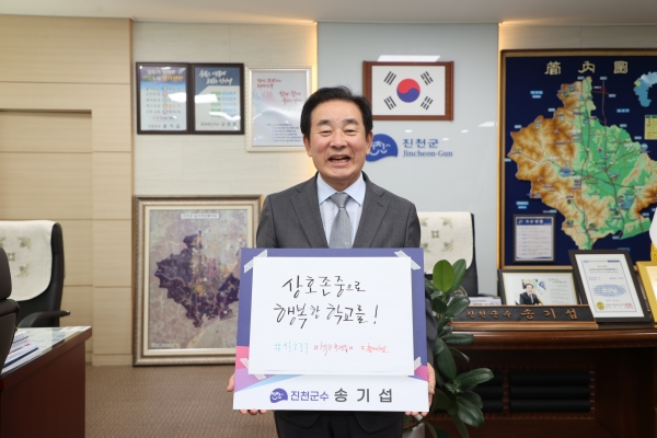[세종타임즈] 송기섭 진천군수는 20일 ‘학생과 교사, 학부모가 상호 존중하는 행복한 학교 만들기’ 릴레이 캠페인에 참여했다.
