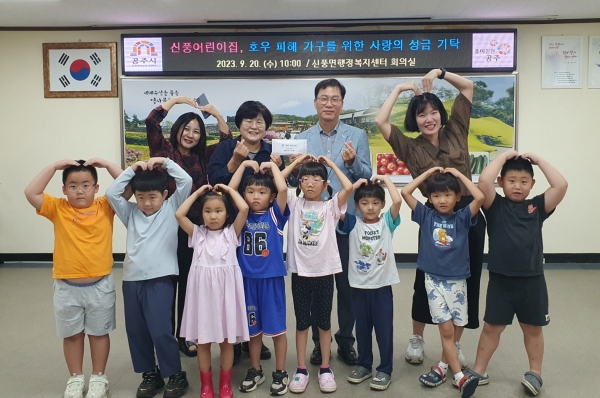 [세종타임즈] 공주시 신풍면 소재 신풍어린이집 원생과 학부모, 보육교직원 일동은 지난 20일 지난 7월 호우 피해를 본 이웃들을 위해 써달라며 신풍면 행정복지센터에 50만원의 성금을 전달했다.