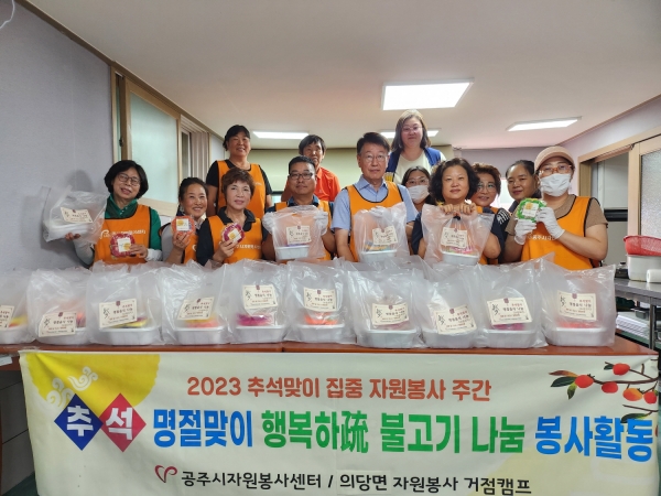 [세종타임즈] 공주시 의당면 자원봉사거점센터는 지난 21일 유계리 공동급식소에서 추석 명절을 앞두고 불고기 만들기 자원봉사를 실시했다.