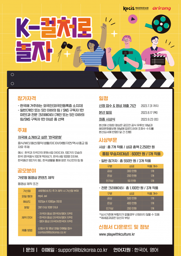 ‘케이-컬처로 놀자’는 주한 외국인이 ‘자국에 소개하고 싶은 한국문화’를 주제로 자유롭게 동영상을 제작해 응모하는 공모전이다.