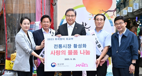 한편 외교부는 전통시장 방문 외에도 매년 명절 계기 간부들과 직원들이 외교부와 결연을 맺고 있는 8개 사회복지시설을 방문, 소외되기 쉬운 주변 이웃들과 정을 나누며 나눔 문화 확산을 위해 노력해오고 있다.
