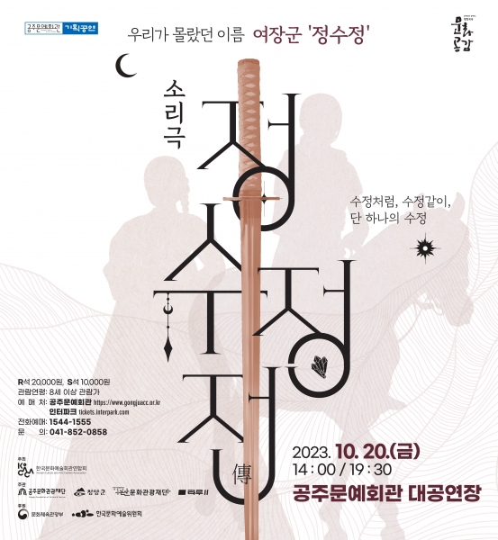 [세종타임즈] 공주문화관광재단은 오는 10월 20일 오후 2시와 19시 30분 공주문예회관 대공연장에서 소리극 ‘정수정전’을 선보인다.