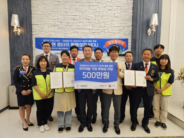 이번 협약을 통해 국제로타리 3680지구 8지역은 ‘드림 앤 로타리 동행 성장 프로그램’에 500만원의 후원금을 전달하기로 했다.