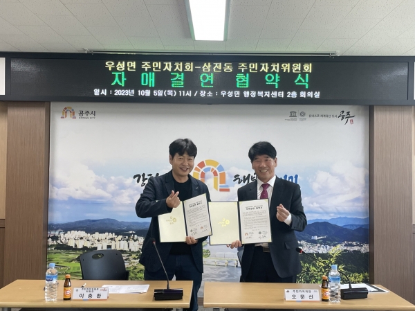 [세종타임즈] 공주시 우성면 주민자치회는 지난 5일 우성면 행정복지센터에서 서울시 송파구 삼전동 주민자치위원회와 자매결연을 체결했다고 밝혔다.