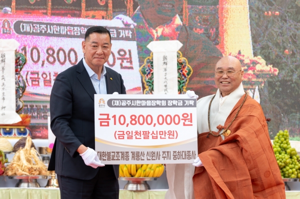 중하대종사 주지는 “지역의 인재들에게 꿈과 희망을 줄 수 있도록 도움이 되기를 바라는 마음으로 장학금을 기탁하게 됐다 앞으로도 지역사회 공헌에 뜻을 두고 활동하겠다”고 말했다.