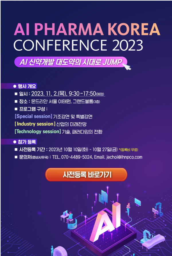 시상은 11월 2일 이태원 몬드리안 호텔에서 개최될 ‘AI Pharma Korea 2023 Conference’ 및 11월 9일 국립과천과학관 창조홀에서 개최되는 ‘2023 대한민국 과학기술대전-빅데이터·인공지능 융합 첨단바이오 심포지엄’에서 진행될 예정이다.
