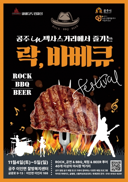 [세종타임즈] 공주시는 오는 11월 4일과 5일 양일간 이인면 찰방센터에서 ‘제1회 락,바베큐 페스티벌’을 개최한다고 25일 밝혔다.
