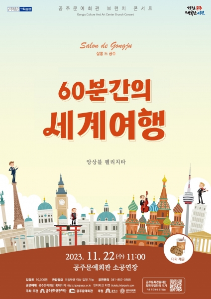 [세종타임즈] 공주문예회관은 오는 11월 22일 오전 11시에 공주문예회관 소공연장에서 살롱 드 공주 ‘60분간의 세계여행’을 선보인다.