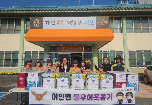 이날 이인면 남녀의용소방대는 생계에 어려움을 겪는 소외계층 10가구를 선정해 100만원 상당의 생필품이 담긴 선물꾸러미를 전달했다.