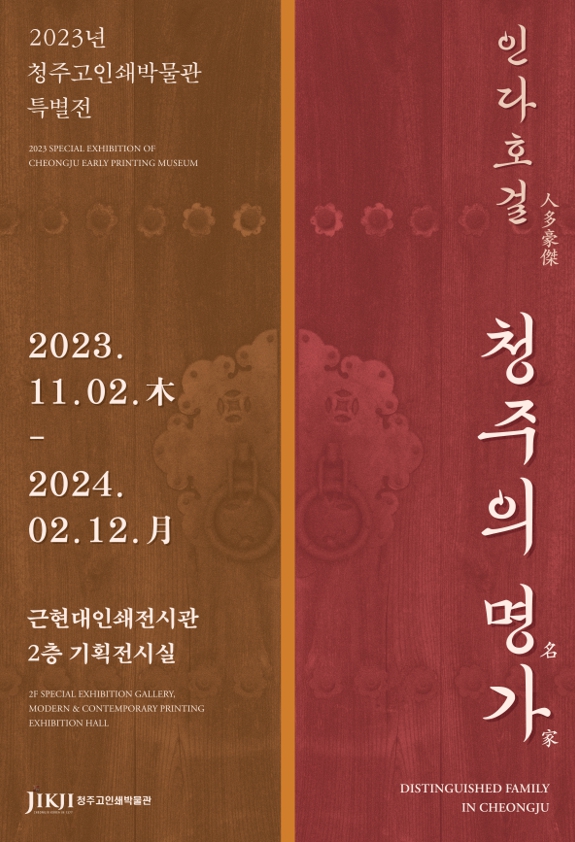 [세종타임즈] 청주고인쇄박물관은 2일부터 2024년 2월 12일까지 근현대전시관 2층 기획전시실에서 ‘인다호걸, 청주의 명가’를 주제로 특별전을 개최한다고 밝혔다.