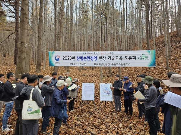 [세종타임즈] 북부지방산림청은 11월 3일 수원국유림관리소 다수종 시범 조림지에서 산림청, 북부청, 국유림관리소, 기술자문단 등 29명이 참석한 가운데 산림순환경영 현장토론회를 실시했다.