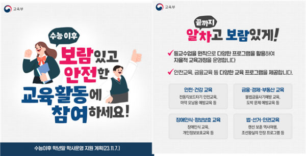또한, 학교에서 수능 이후 학년말 시기에 운영한 다양한 교육활동 사례를 발굴해 전체 학교에 공유할 계획이다.