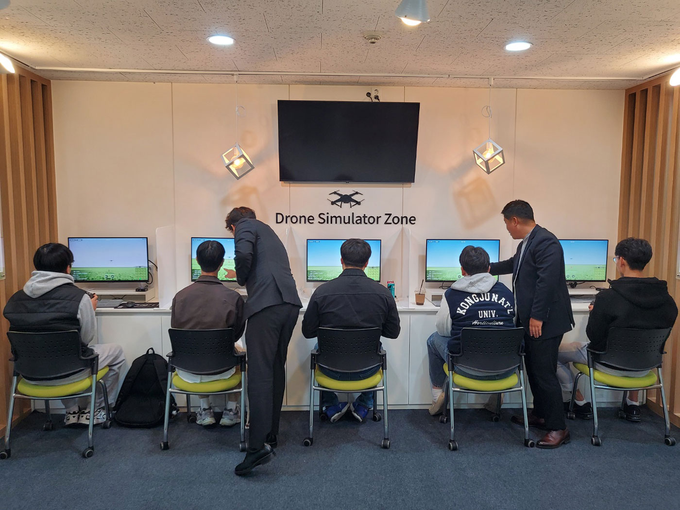 드론시뮬레이션 존은 학생들의 드론 조종 및 공중 촬영 등을 교육하기 위해 구축되었으며, 드론 시뮬레이션 교육을 통해 드론 조종에 대한 숙련도를 높이게 되었다.