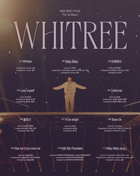 남우현은 16일 0시 공식 SNS 채널을 통해 첫 솔로 정규 앨범 ‘Whitree’의 트랙리스트 이미지를 공개했다.
