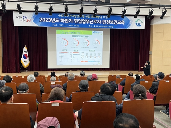 [세종타임즈] 홍성군은 15일 홍성군농업기술센터 대강당에서 현업업무 종사자 150여명을 대상으로 산업재해예방을 위한 근로자 안전보건교육을 실시했다.
