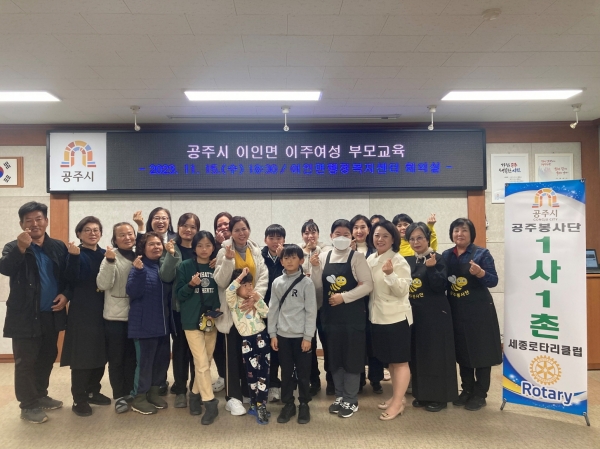[세종타임즈] 공주시 이인면은 최근 이인면 자매결연단체인 공주봉사단과 세종로타리클럽에서 관내 이주여성 20여명을 대상으로 부모교육을 진행했다고 17일 밝혔다.