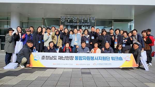 [세종타임즈] 충청남도자원봉사센터는 16일~17일 광주광역시 일원에서 통합자원봉사지원단 재난봉사단체 리더와 도·시·군자원봉사센터 재난 실무자 등 37명이 함께 참여해 ‘충청남도 재난현장 통합자원봉사지원단 워크숍’을 실시했다.