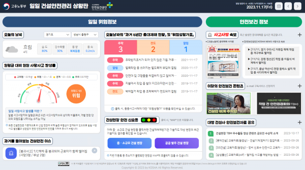 이번에 개발한 안전상황판은 사업장에서 편리하게 이용할 수 있도록 건설업에 특화된 각종 안전보건정보를 한 곳에서 제공한다.