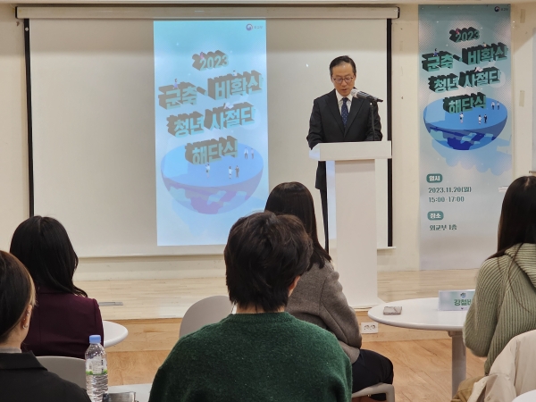 권기환 다자외교조정관은 축사를 통해 그간 적극적으로 활동한 청년사절단에게 감사의 인사를 전하고 2023 군축·비확산 청년사절단 활동은 종료되지만 지속가능한 평화를 위해서는 미래 세대인 청년의 참여가 중요하므로 앞으로도 군축·비확산에 대해 관심을 계속 가져달라고 당부했다.