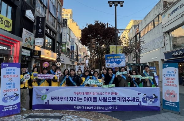 이날 캠페인에는 아동학대대응정보연계협의체 구성 기관인 충청북도경찰청, 흥덕·상당·청원경찰서 청주시교육지원청, 충북아동보호전문기관, 청주시의사회, 충북대학교 아동권리보호센터, 청주시 아동학대전담공무원 등 20여명이 참여했다.