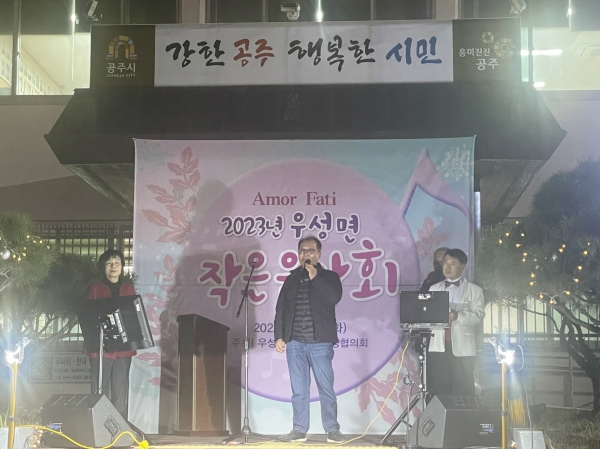 조권식 우성면장은 “한 해를 마무리하는 시점에 음악회를 개최해 지역민들에게 행복을 선사해 주셔서 감사드린다. 주민들이 함께 즐기고 서로 간의 정을 나눌 수 있는 자리를 마련해 나가겠다”고 말했다.