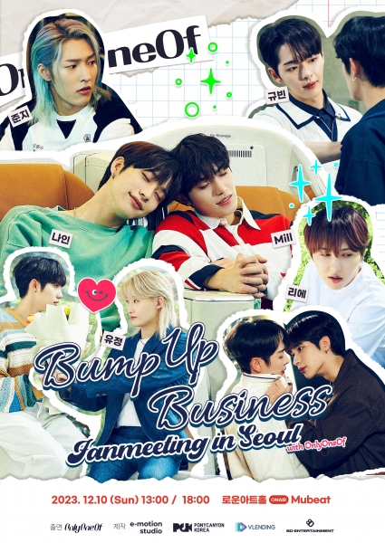 이처럼 국내외 팬들이 보내준 사랑에 보답하기 위해 개최되는 ‘범프 업 비즈니스’ 팬미팅은 12월 10일 오후 1시와 6시 2회차로 진행되며 온리원오브 멤버 전원이 참석해 다채로운 토크를 비롯한 풍성한 세트리스트를 선보일 예정이다.