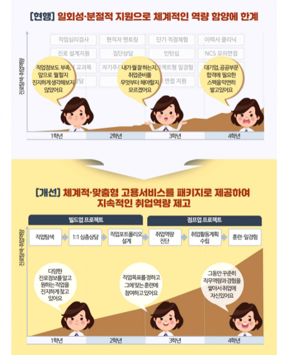 한편 재학생 맞춤형 고용서비스는 올해 12개 대학의 시범사업을 시작으로 2024년에는 50개 대학으로 확대해 운영될 예정이다.