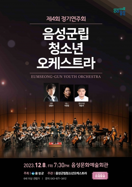 [세종타임즈] 음성군을 대표하는 음성군립 청소년 오케스트라 제4회 정기연주회가 오는 12월 8일 오후 7시 30분 음성문화예술회관 대공연장에서 열린다.